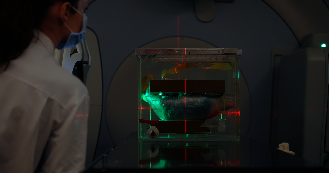Pendant qu’une personne est encore endormie sur la table d’opération, son os fait un aller-retour hors de son corps: c’est l’irradiation extracorporelle. Cette technique, à la frontière entre la radio-oncologie et la chirurgie, permet de traiter un type de cancer très rare : les sarcomes osseux. Elle consiste à «recycler» les os atteints de cancer, en greffant aux patient-es leur propre os, après destruction des cellules cancéreuses par irradiation. Le Dr Stéphane Cherix, chirurgien oncologue du Service d’orthopédie et traumatologie et le Dr Rémy Kinj, du Service de radio-oncologie la pratiquent depuis 2016 au CHUV. Étroitement coordonnés, les deux spécialistes se relaient : le chirurgien procède à l’ablation du segment osseux où se trouve la tumeur, qui est ensuite irradié par radiothérapie à plus de 50 gray (l’unité de mesure de la dose absorbée de rayonnement ionisant) avant d’être réimplanté et refixé à l’os natif.